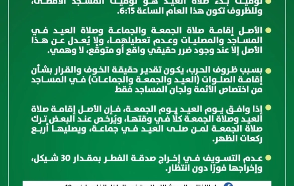 بسم الله الرحمن الرحيم دار الإفتاء والبحوث الإسلامية48 *البيان رقم (90) - بشأن عيد الفطر 🟢 *تدعو دار الإفتاء والبحوث الإسلامية إلى متابعة دار الإفتاء الفلسطينية في القدس ورئيسها الشيخ محمد أحمد حسين للإعلان عن يوم...