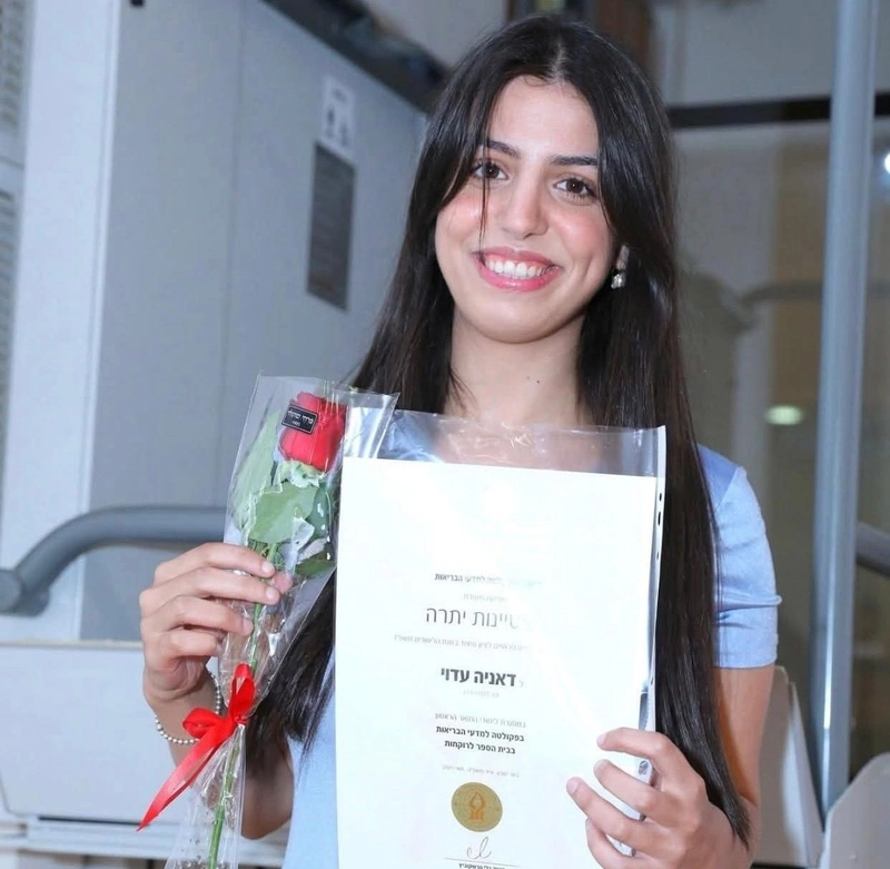 وحصلت دانية عدوي علىمعدل تراكمي 94.3 ، من جامعة بن غوريون.