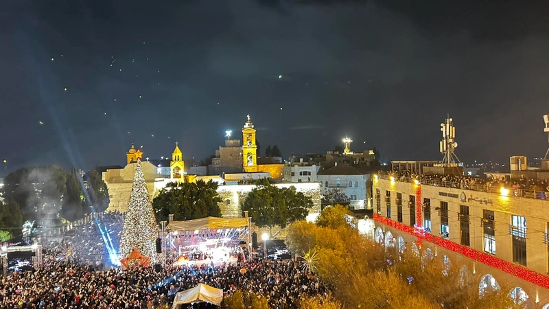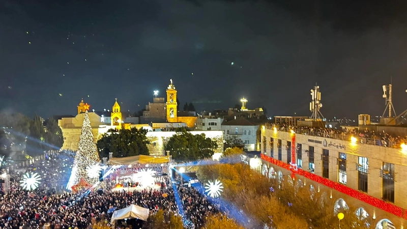 أُضيئت مساء أمس السبت شجرة عيد الميلاد المجيد في ساحة كنيسة المهد بمدينة بيت لحم، للمرة الأولى منذ عامين، بعد أن أُلغيت الاحتفالات في 2023 و2024 بسبب الحرب على غزة والأوضاع الأمنية الصعبة.