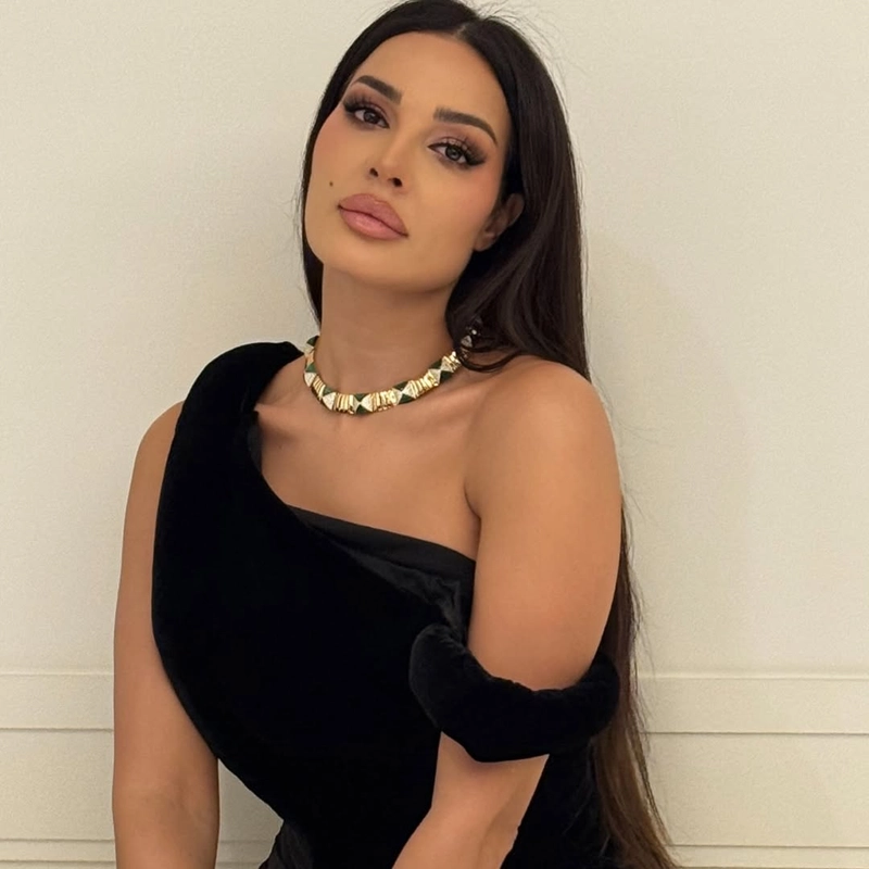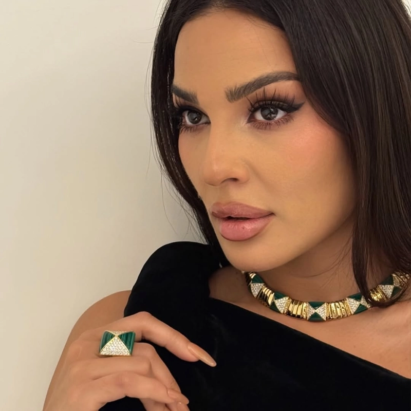 حضرت نادين نسيب نجيم حفل مجوهرات مارلي في السعودية بفستانٍ أسود اللون، الجزء العلوي منه مخملي، في حين جاء الجزء السفلي بستايل ضيق.