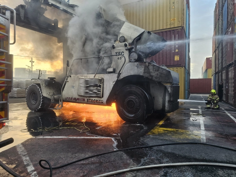 خلال عمليات الإخلاء اشتعلت النيران في آلية هندسية كانت تعمل في الموقع وقد تضررت إلا أنه تم إخمادها بسرعة من قبل الطواقم دون وقوع إصابات